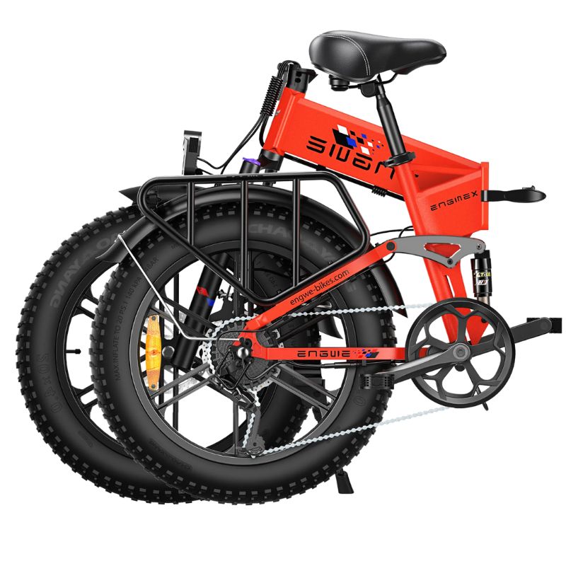 The Engwe Engine X is a high-performance foldable electric fat tire bike designed for riders seeking versatility and power. Equipped with a 250W brushless motor and a 48V 13Ah removable lithium-ion battery, it offers a top speed of 25 km/h and a range of up to 120 km on pedal-assist mode. The full suspension system and 20"x4.0" fat tires provide a smooth and comfortable ride across various terrains. Whether you're commuting in the city or exploring off-road trails, the Engine X delivers reliability and performance.