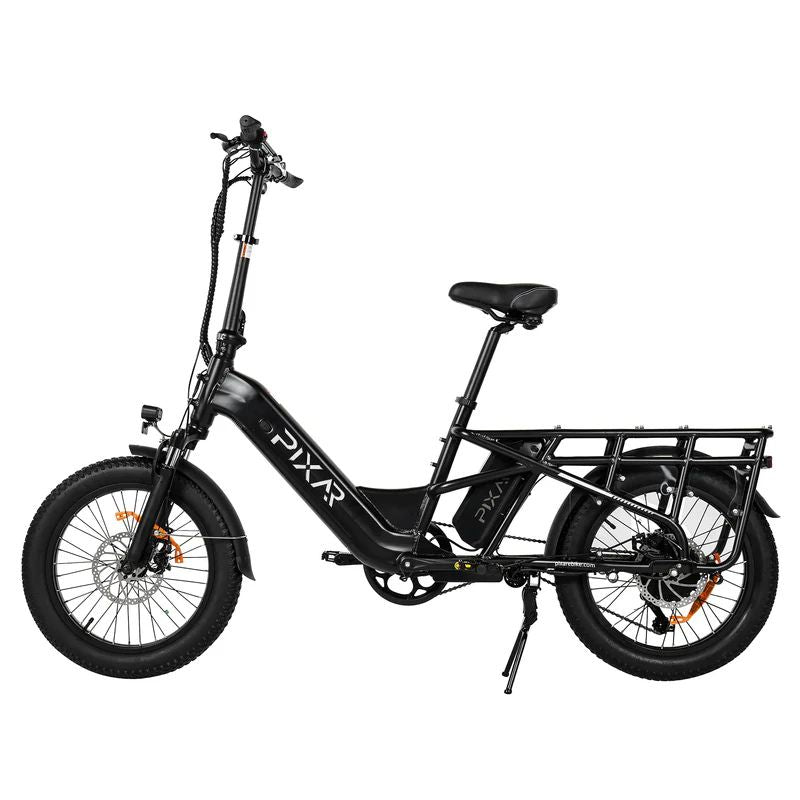 Meet the PIXAR® Plus7 Fat‑Tyre Electric City Bike—a powerful yet nimble urban companion. Featuring riding-friendly 20×3″ fat tyres, front suspension, and a high-capacity 48 V system with optional dual batteries, the Plus7 delivers lane-smoothing comfort, cargo capabilities, and adaptability for long rides.