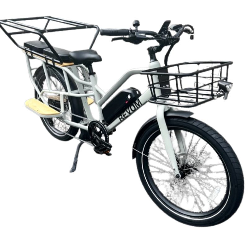 1. Built for heavy loads, designed for comfort. Many cargo bikes struggle under weight — Revom eCargo was engineered to thrive under full load, thanks to a robust frame, hydraulic brakes, and a generous load rating.